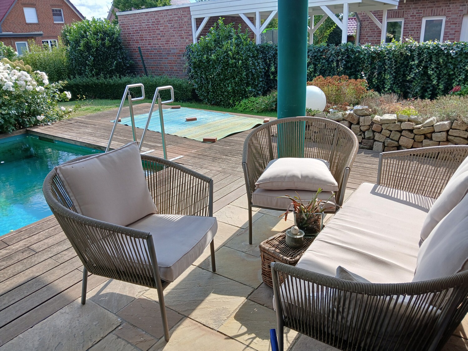 Das Grundstück bietet mit dem zur Sonnenseite ausgerichteten, hochwertigen Naturpool eine besondere Wohnqualität, die selten zu finden ist. Der Außenbereich lädt zum Verweilen und Genießen ein – perfekt für erholsame Stunden im eigenen Zuhause.