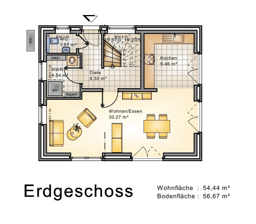 Baubeschreibung AMR – ECO Komfort mit Wärmepumpe, Fußbodenheizung und PV-Anlage.