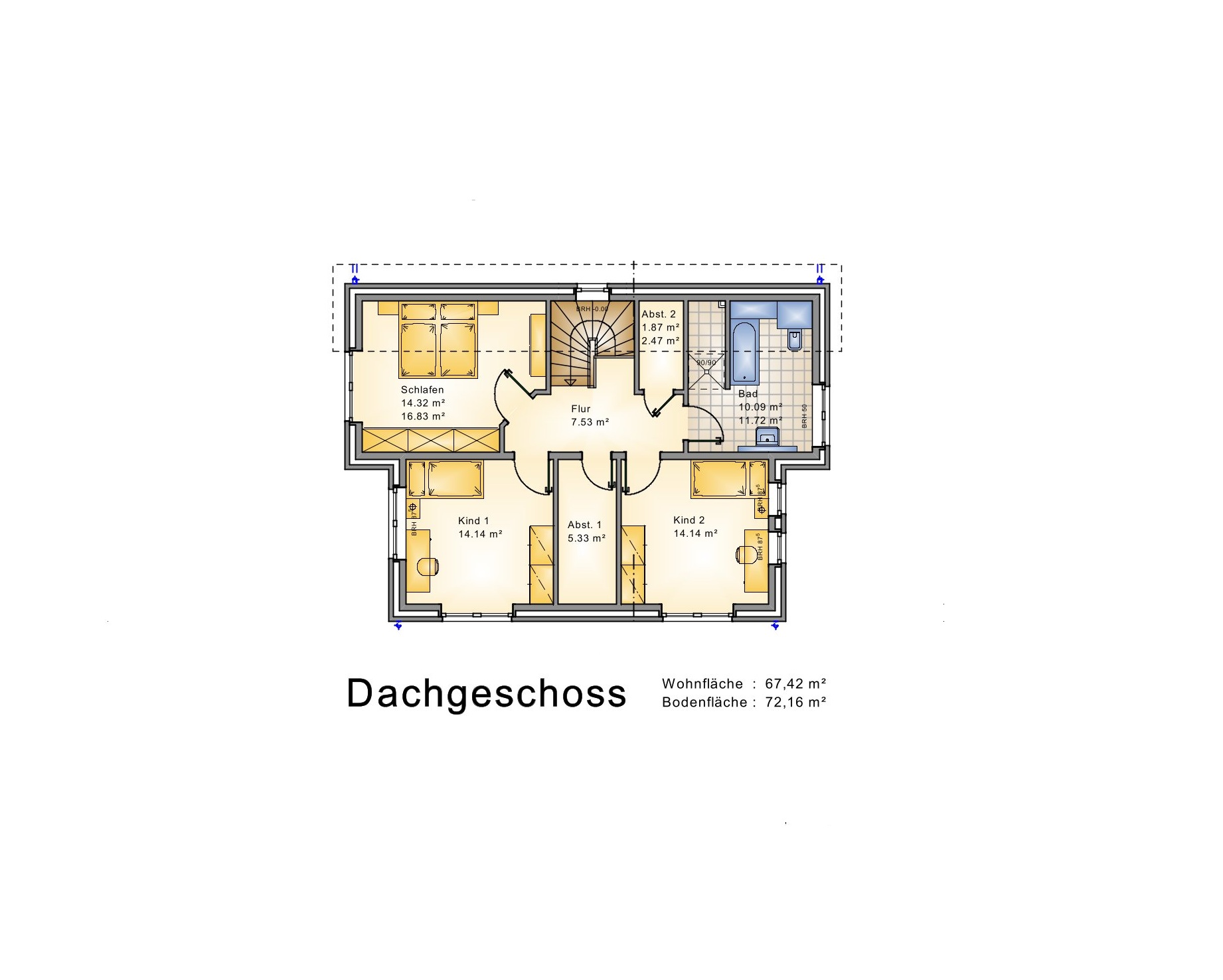 Unser AMR-Satteldach ist seit Jahrzehnten der am häufigsten gebaute Haustyp. Durch jahrelange Erfahrung und stetige Optimierung der Bauabläufe sind unsere Satteldachhäuser Spitzenreiter im Verhältnis von Wohnfläche zu Baukosten.