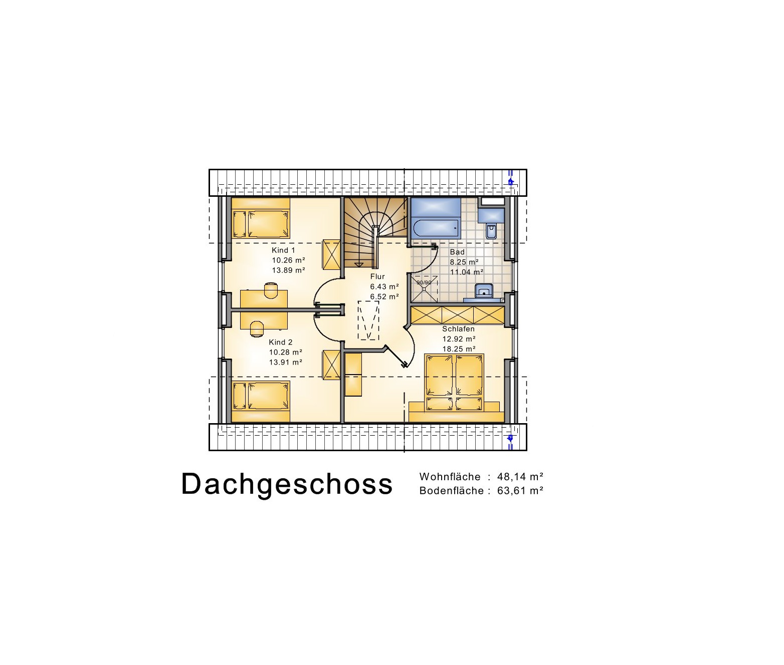 Unser AMR-Satteldach ist seit Jahrzehnten der am häufigsten gebaute Haustyp. Durch jahrelange Erfahrung und stetige Optimierung der Bauabläufe sind unsere Satteldachhäuser Spitzenreiter im Verhältnis von Wohnfläche zu Baukosten.