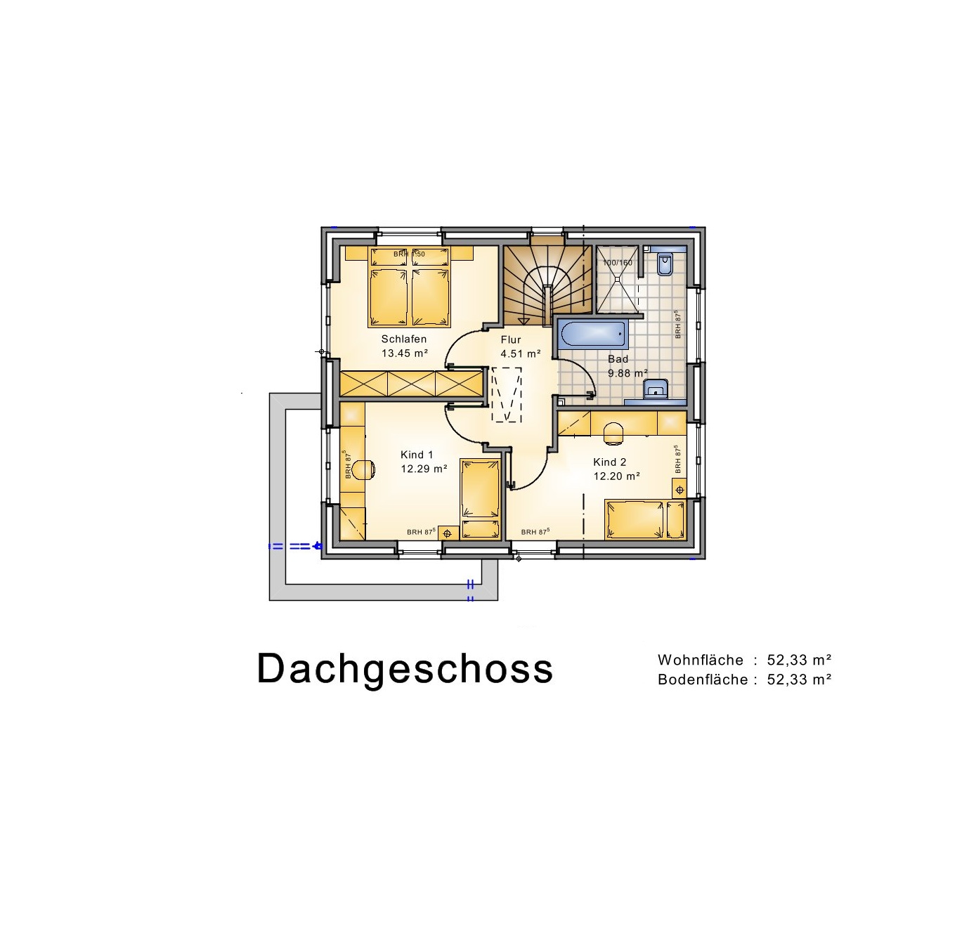 Unser AMR-Satteldach ist seit Jahrzehnten der am häufigsten gebaute Haustyp. Durch jahrelange Erfahrung und stetige Optimierung der Bauabläufe sind unsere Satteldachhäuser Spitzenreiter im Verhältnis von Wohnfläche zu Baukosten.