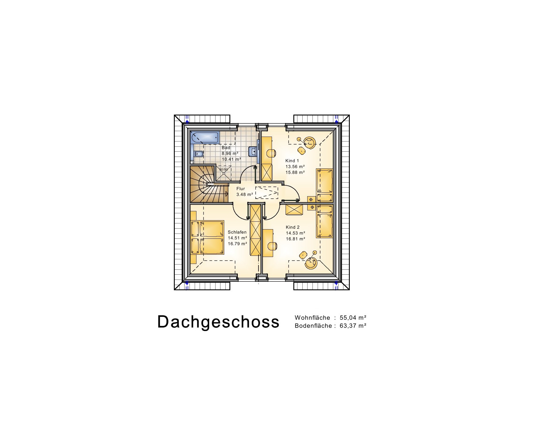 Unser AMR-Satteldach ist seit Jahrzehnten der am häufigsten gebaute Haustyp. Durch jahrelange Erfahrung und stetige Optimierung der Bauabläufe sind unsere Satteldachhäuser Spitzenreiter im Verhältnis von Wohnfläche zu Baukosten.